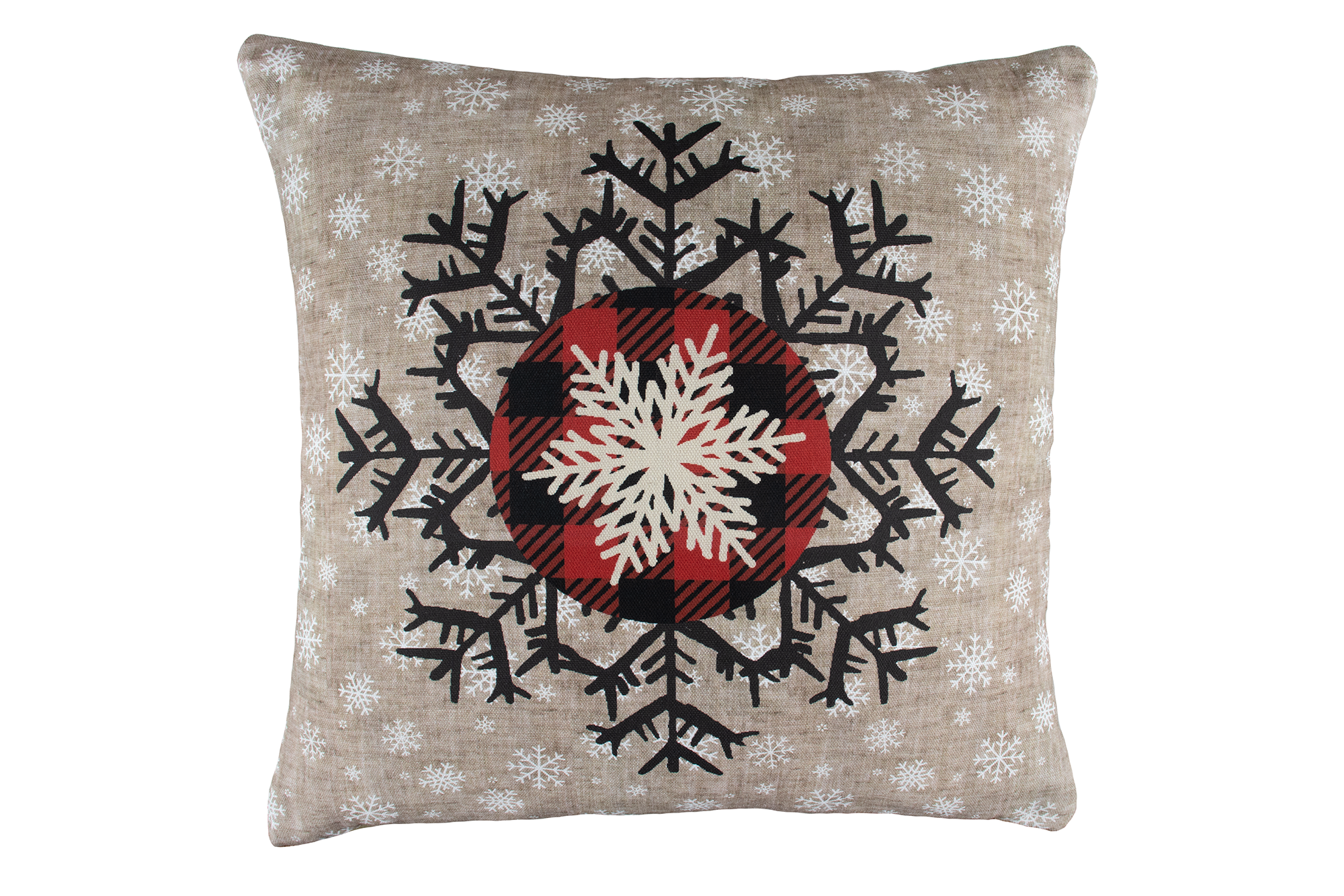Suloinen Lumihiutale koristetyyny 45x45cm. Koristetyynyn toisella puolella on vaalea sisustuskangas Irroitettava polyesterinen sisätyyny, päällinen on avattavissa vetoketjulla. Pesu 30 asteessa.