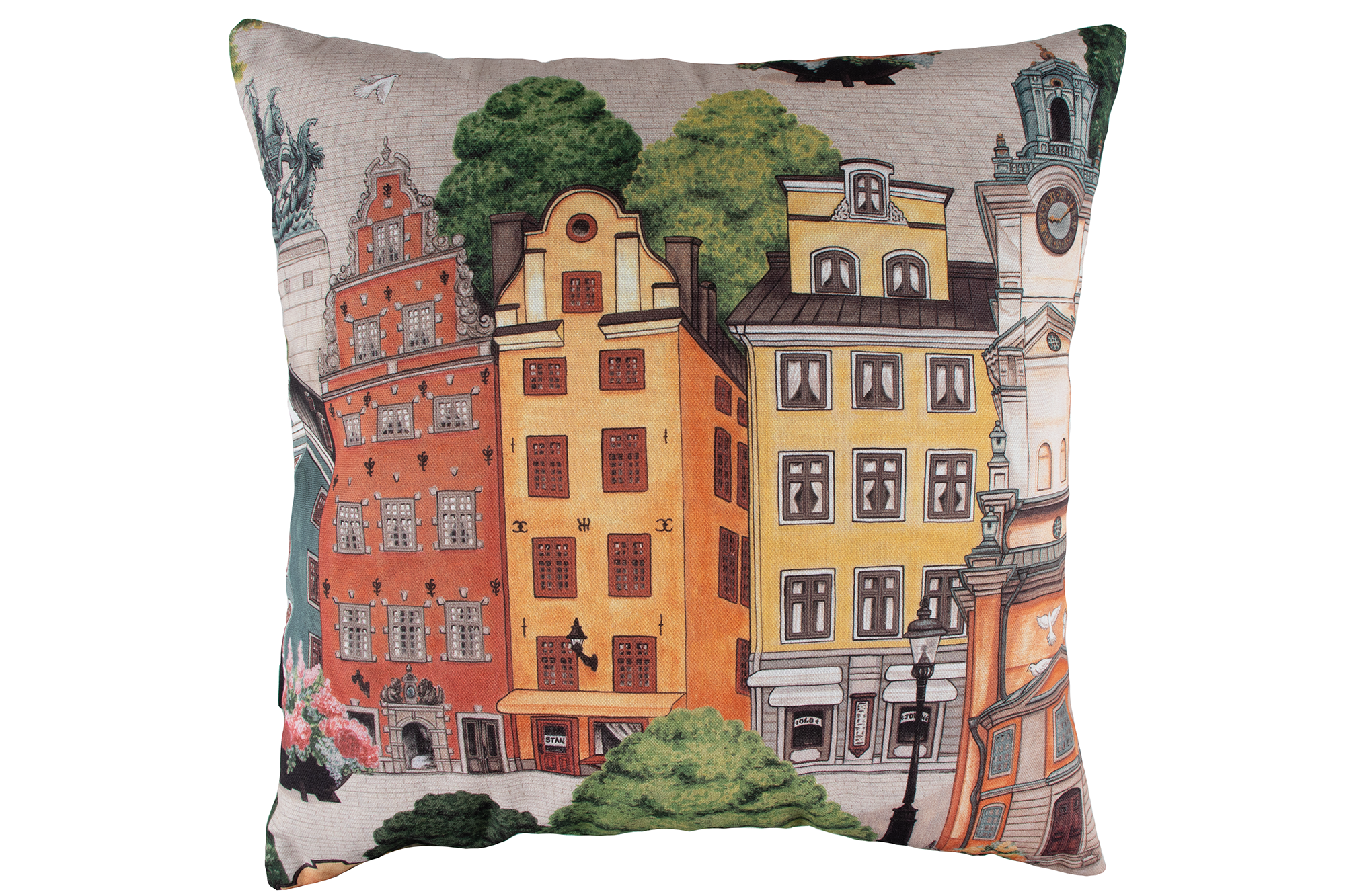 Kevään sisustus huokuu värejä! Kaupungilla koristetyyny on valmistettu Arvidssons Textilin Stortorget kankaasta. Irroitettava polyesterinen sisätyyny, päällinen avattavissa vetoketjulla. Pesu 30 asteessa.