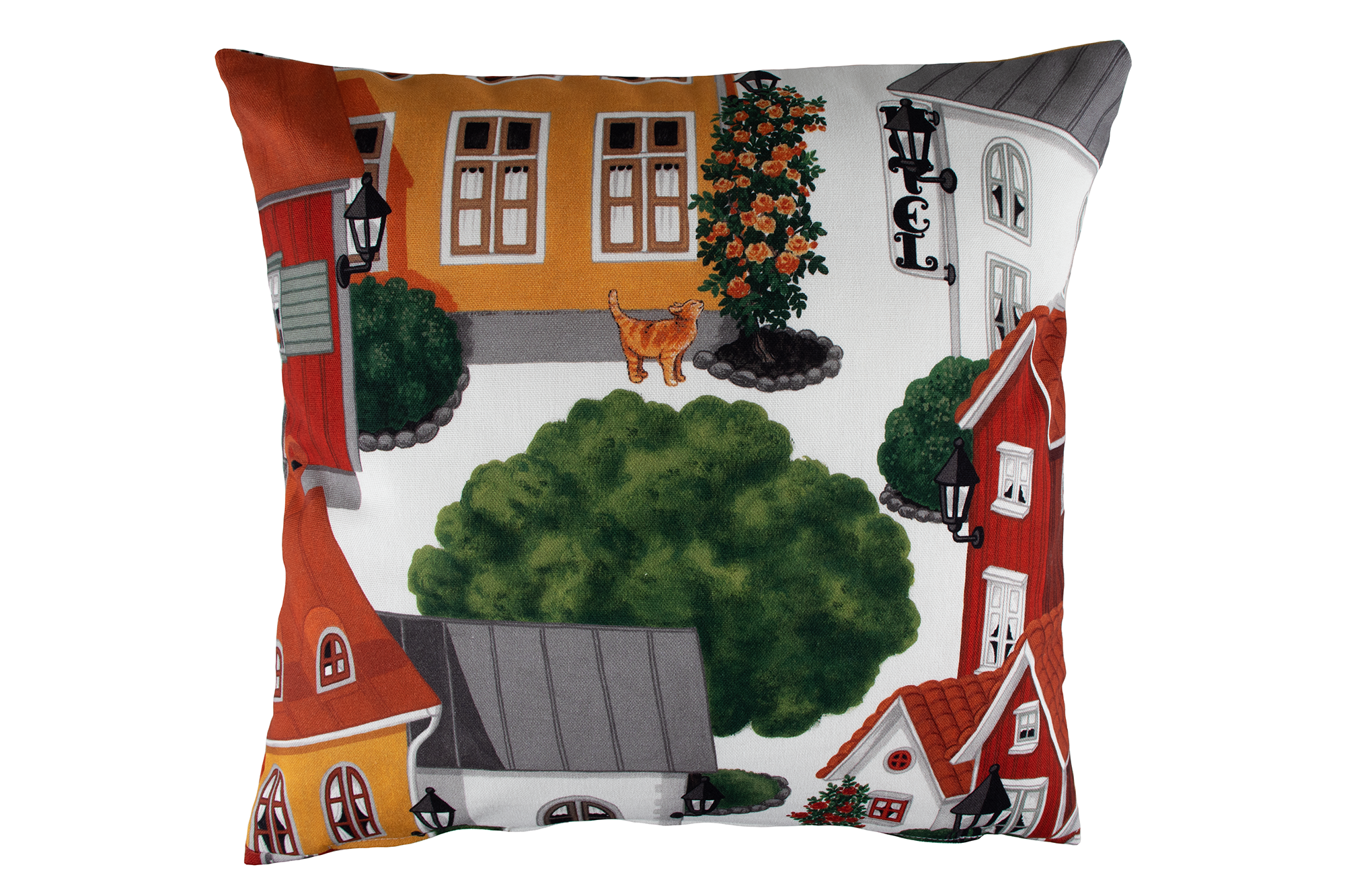 Kevään sisustus huokuu värejä! Onnenkylä koristetyyny on valmistettu Arvidssons Textilin Lyckeby kankaasta. Irroitettava polyesterinen sisätyyny, päällinen avattavissa vetoketjulla. Pesu 30 asteessa.