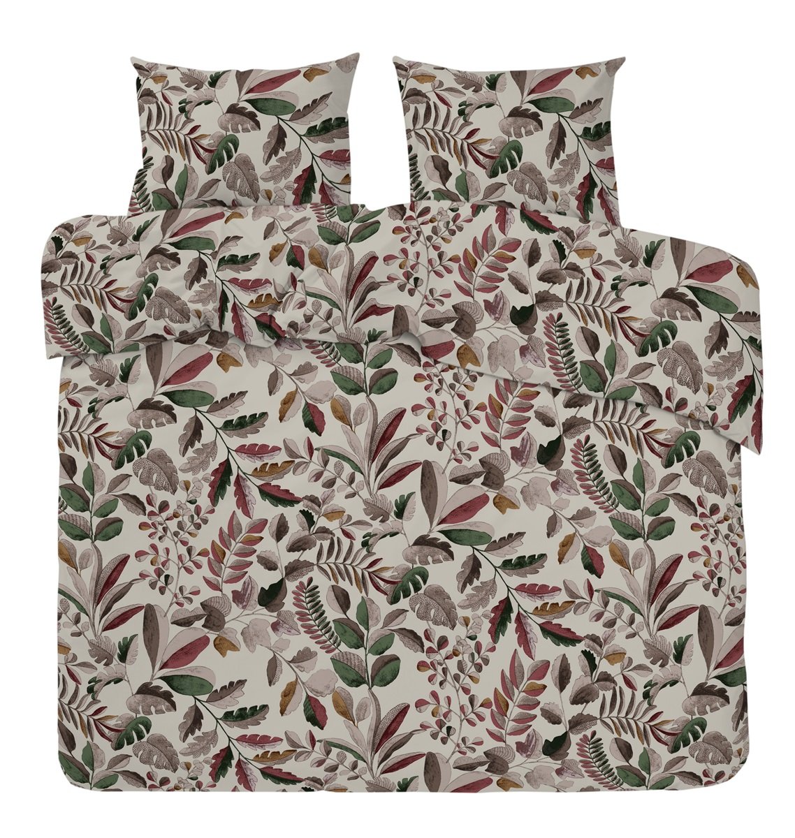 Ihanan pehmeästä puuvillasta valmistettu parivuoteen pussilakanasetti Lehdet 220x210cm. Pussilakanassa on kulmareiät ja aukko alareunassa. Pussilakanan voi pestä 60 asteessa. Setissä on kaksi kappaletta 50x60cm tyynyliinaa.
