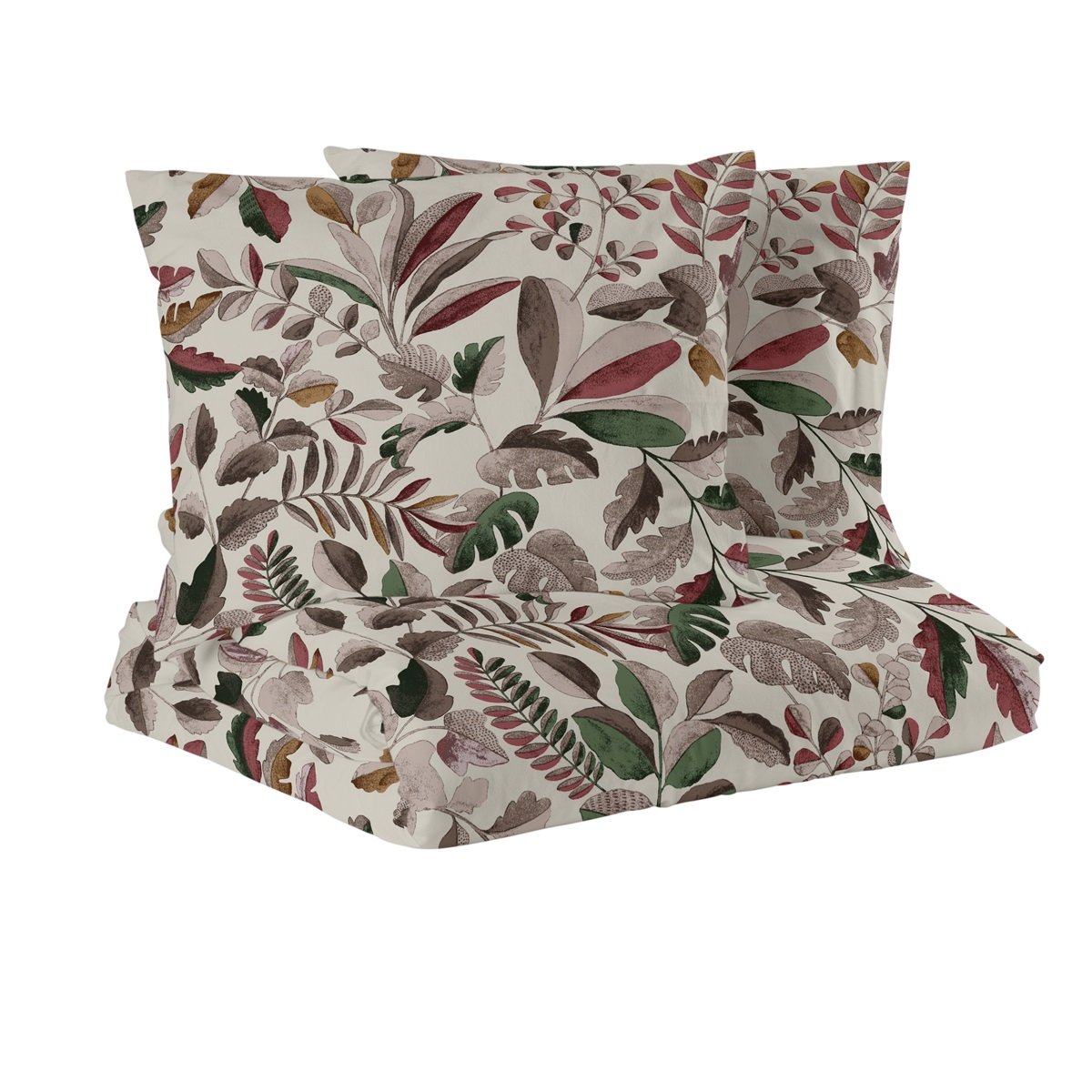 Parivuoteen pussilakanasetti Lehdet 220x210cm – punainen